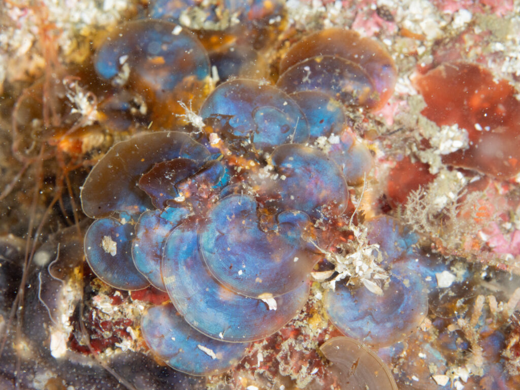 裏側を向けて育ていると、裏側が青色に発色し始めることがある。